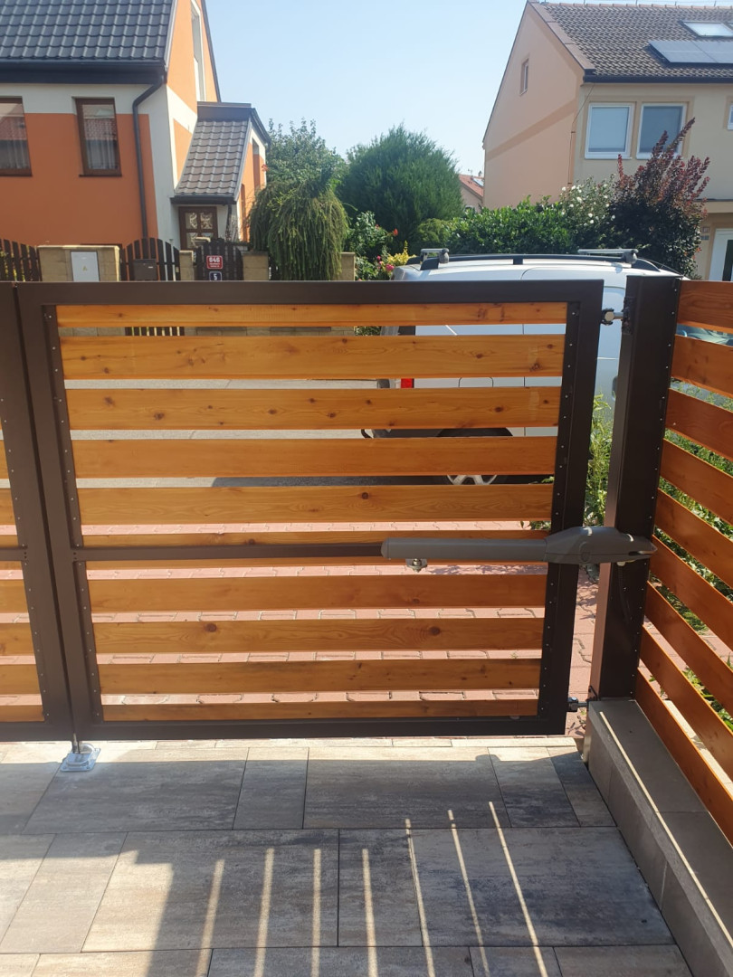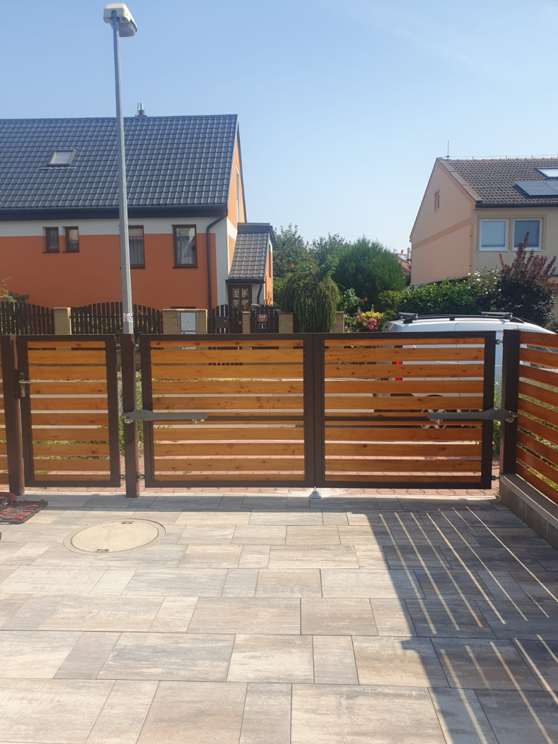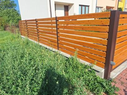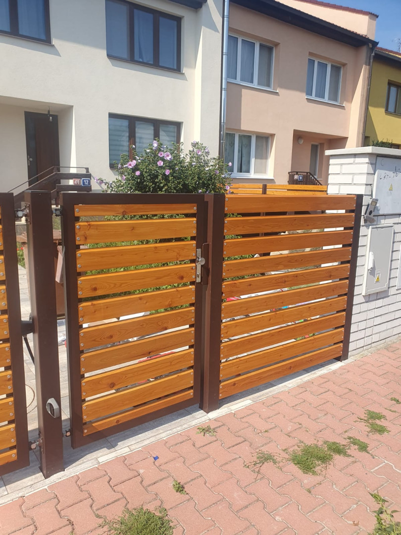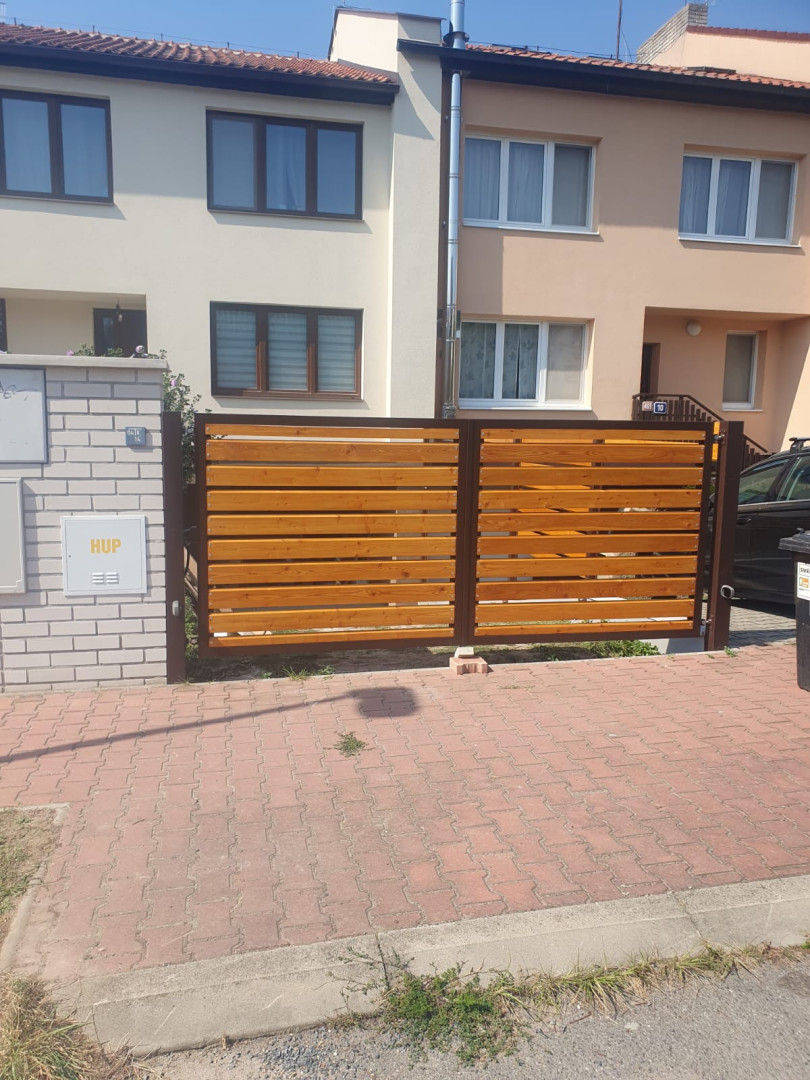 | Ostatní | 1x vstupní branka cca 1000x1500mm výplň = celé dílo Rhombus 20x120x4000mm lakování na dílně, montáž dřeva, sloupky provedení komplet zinek |