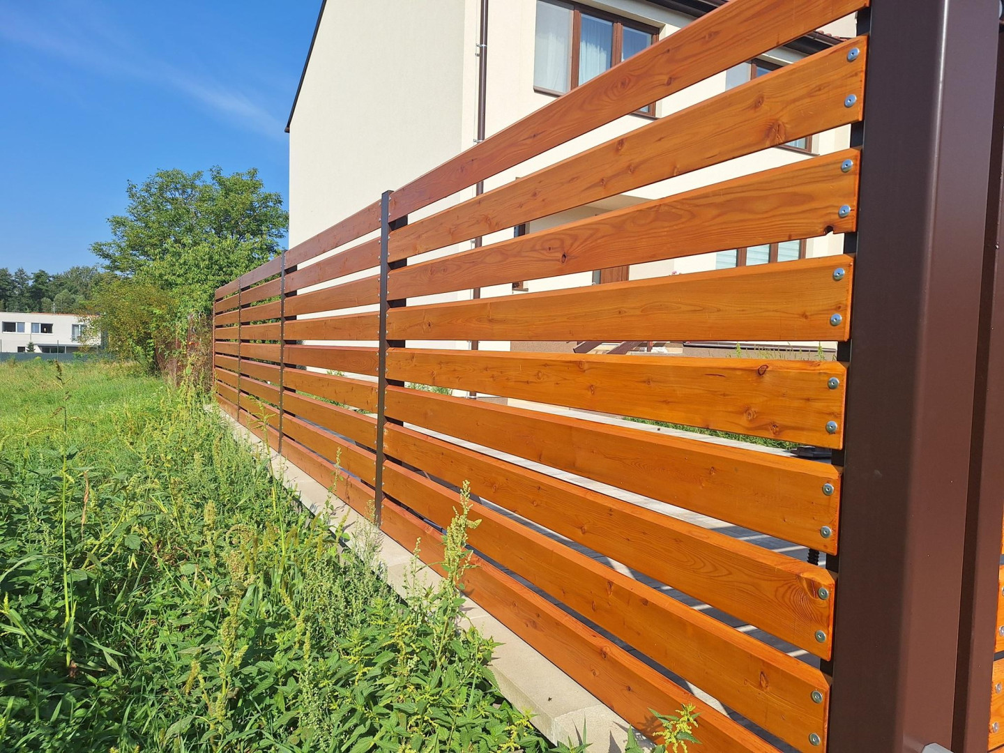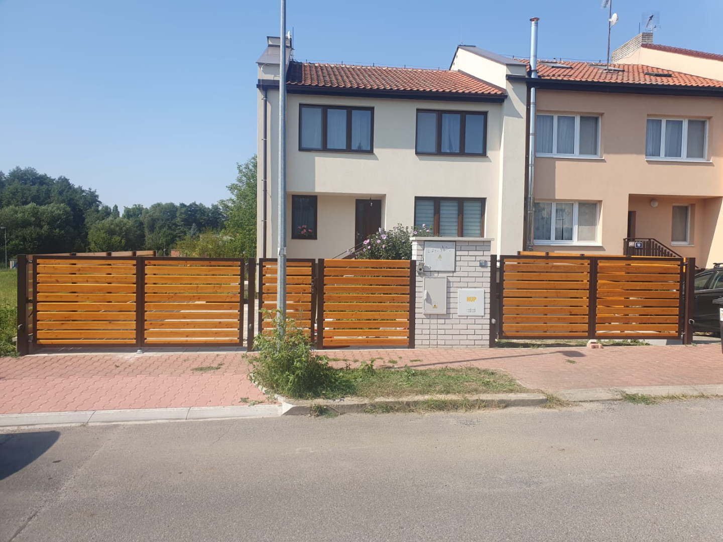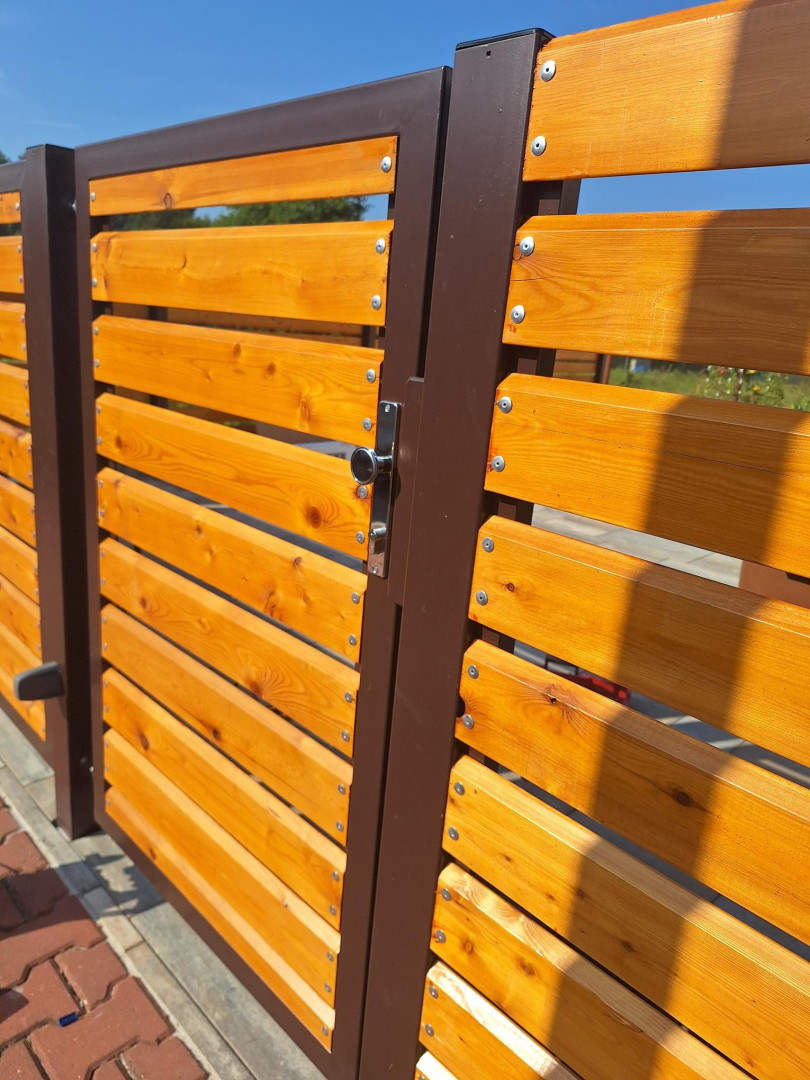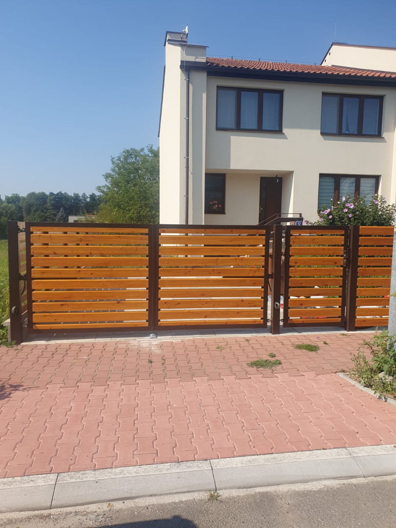 | Ostatní | 1x vstupní branka cca 1000x1500mm výplň = celé dílo Rhombus 20x120x4000mm lakování na dílně, montáž dřeva, sloupky provedení komplet zinek |