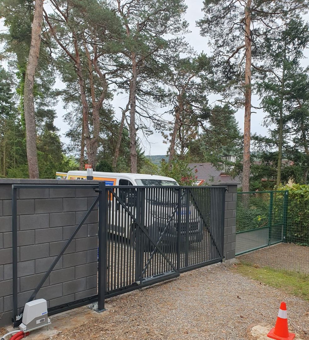 Naše pojezdové brány jezdí po kolečkách připevněné do kolejnice do předem připraveného betonového základu.